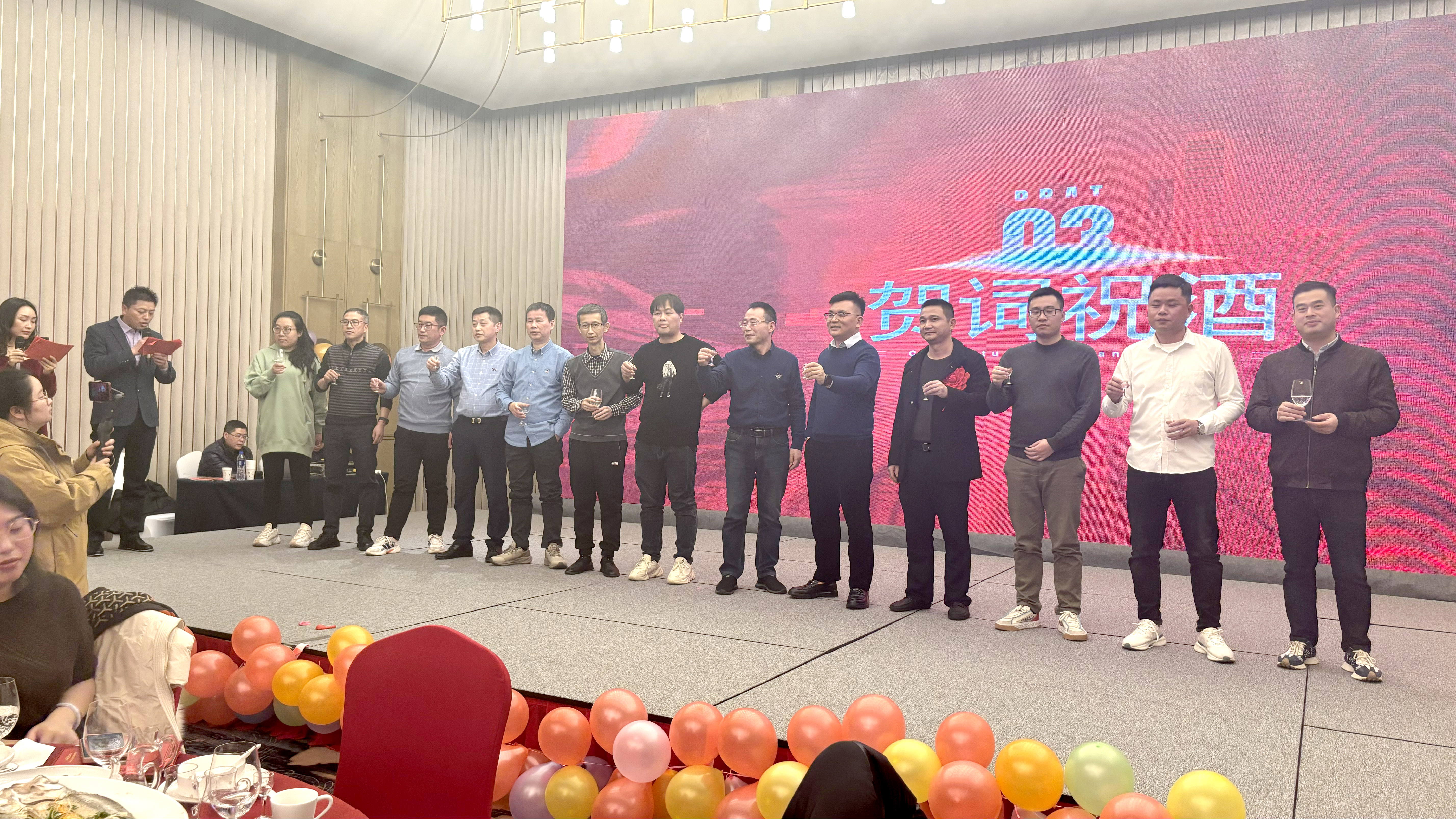 人生得意须尽欢,当歌对酒长精神。随后进入高管祝酒环节。高管们兴致高昂,声彻大厅。职员们集体起立,喜形于色。酒过三巡,人已微醺。一杯一盏,尽皆情谊。